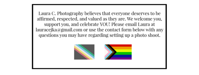 By booking a session with Laura C Photography, you hereby grant to Laura C. Photography the right to use and publish images and photographs taken at your photography session to further promote its service, including portfolio, web site, display, advertisement, and editorial use. Laura C. Photography retains all copyrights to the images and derivative works thereof.